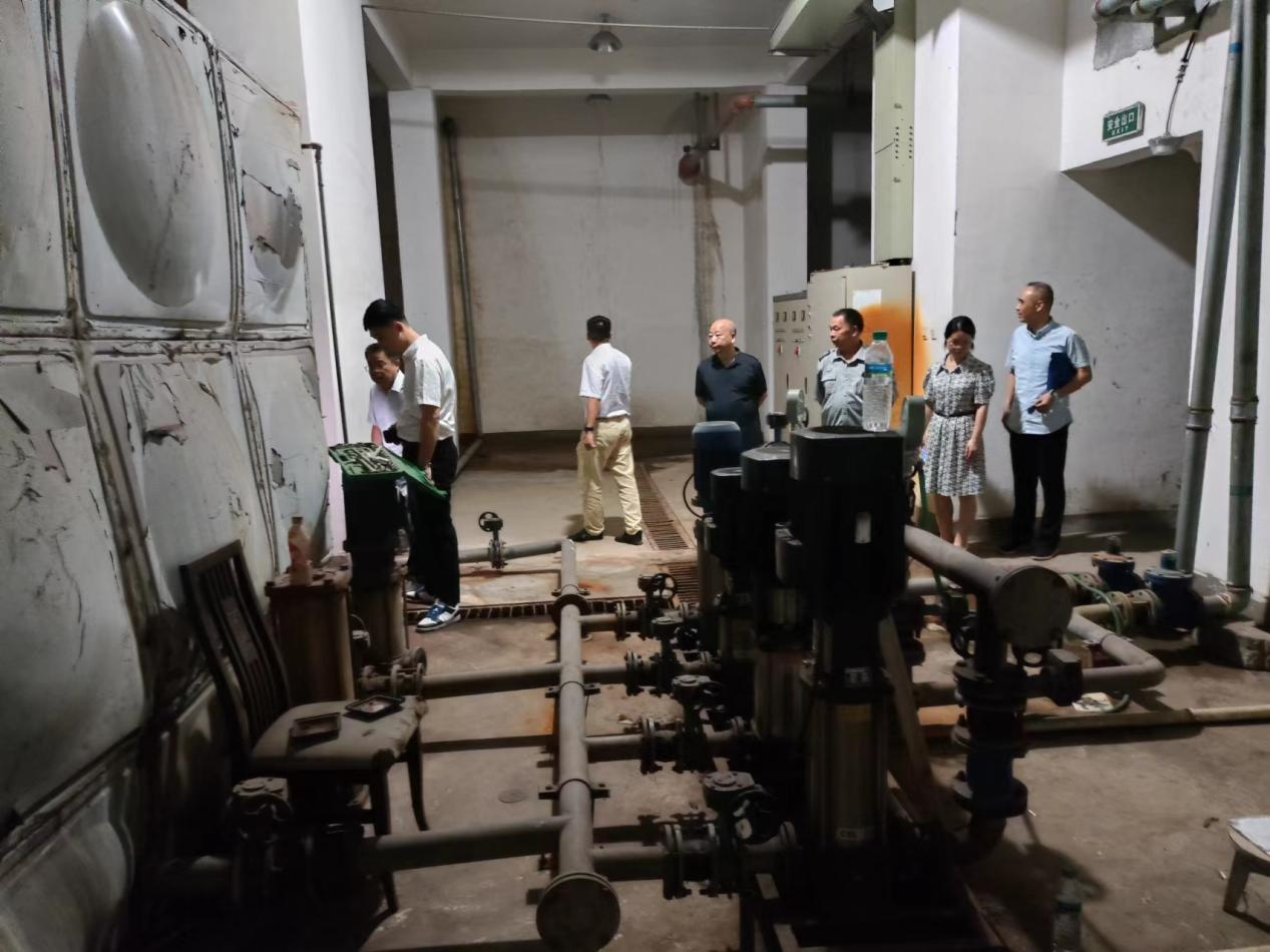 聽取何總匯報后鐘組長、胡調(diào)研員等一行人帶著問題到現(xiàn)場查看花樣年華小區(qū)、恒基廣場小區(qū)、地王廣場小區(qū)二次供水設(shè)備管理現(xiàn)狀情況。
