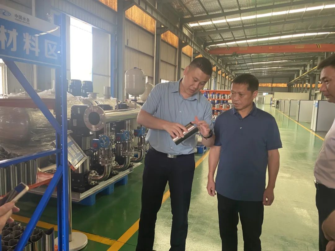 6月26日上午,蘆溪水務(wù)總經(jīng)理劉慈華,易總監(jiān)等蒞臨我司參觀交流并指導(dǎo)工作。劉總一行在我司總經(jīng)理陳科宇等公司領(lǐng)導(dǎo)陪同下,先后參觀了公司機(jī)械生產(chǎn)車間、二次供水設(shè)備展廳及二次供水監(jiān)控管理平臺(tái)。